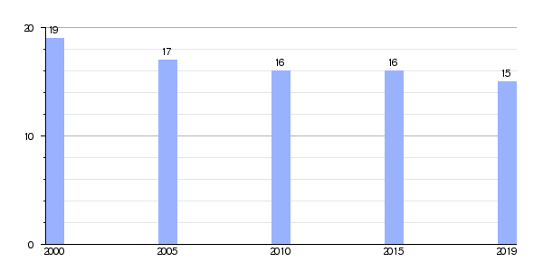 | Gráfica de evolución demográfica de A Abelleira entre 2000 y 2019 |
