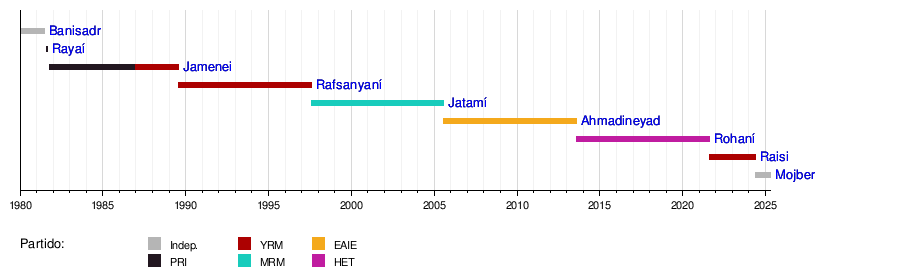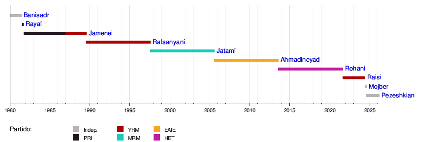 | Consejo Presidencial Provisional | 30 de agosto de 1981 | 13 de octubre de 1981 | Liderado por Mohammad Reza Mahdavi Kani | - | Mohammad Reza Mahdavi Kani (1981) |