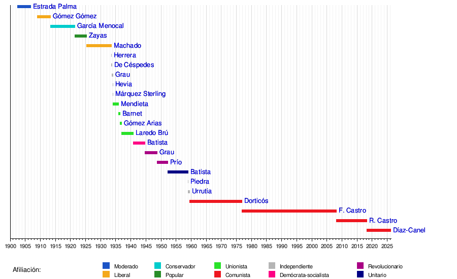 Línea temporal de los presidentes de Cuba
