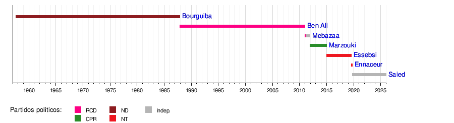 25 de julio de 1957 | 7 de noviembre de 1987 | Neo-Destour | 30 años, 3 meses y 13 días | 1959