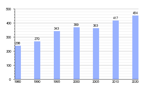 Gráfica de evolución demográfica de Aquiles Serdán 1.ª Sección entre 1980 y 2020
