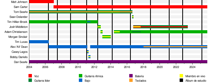 - Tom Searle - guitarra líder (2004–2016, fallecido en 2016)