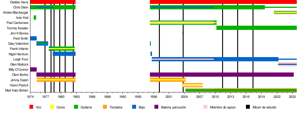 - Debbie Harry: voz principal (1974-1982, 1997-presente)