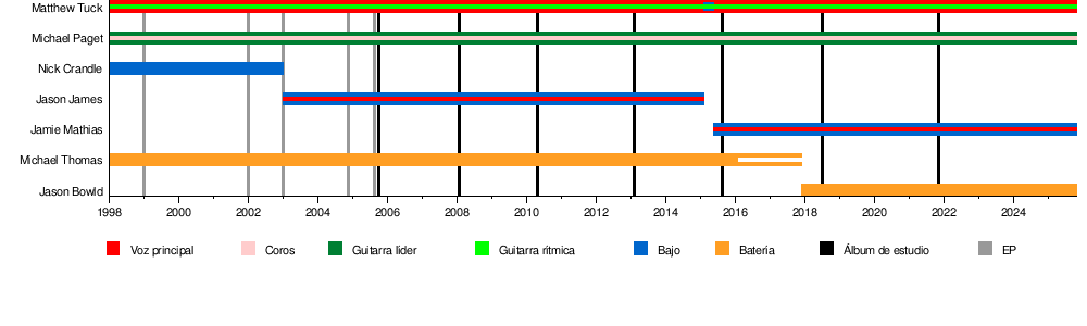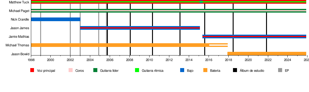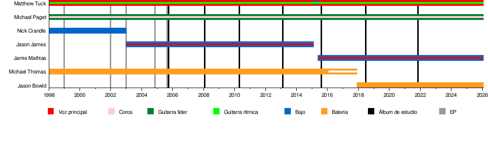 - Matt Tuck – voz principal, guitarra rítmica (desde 1998).