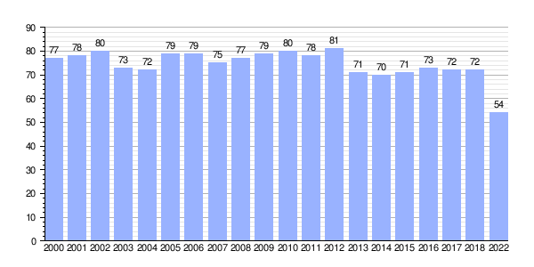 | Gráfica de evolución demográfica de Cruxeiras entre 2000 y 2022 |