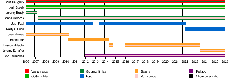 | Chris Daughtry Josh Steely Brian Craddock Elvio Fernandes Jeremy Schaffer Marty O’Brien |