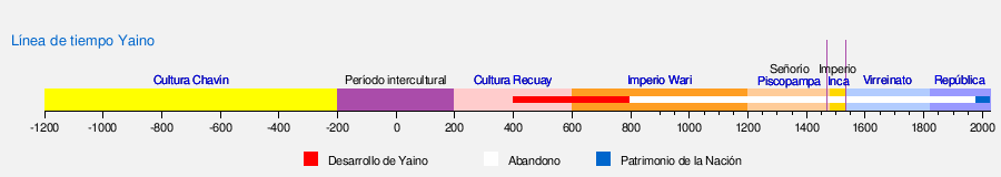 La Cultura Recuay fue la principal constructora y ocupante de Yaino. Su período de mayor actividad en este sitio fue entre los años 400 y 800 d.C. Después del año 800 d.C., el lugar fue abandonado.