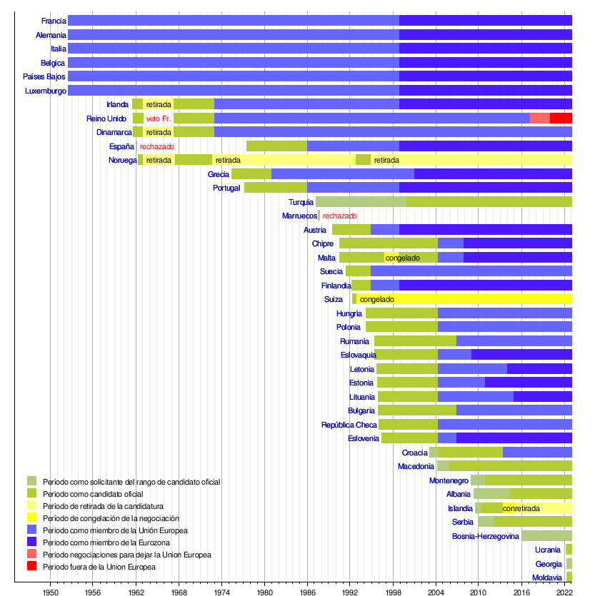 Tabla cronológica de la membresía a la Unión Europea