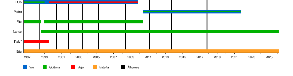- Adolfo Alejandro Garmendia Pindado, Fito: guitarra y coros (1996-1998, 1998-2010)