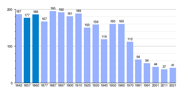 | 1900 | 1910 | 1920 | 1930 | 1940 | 1950 | 1960 | 1970 | 1981 | 1991 | 1996 | 2001 | 2004 | 2006 |