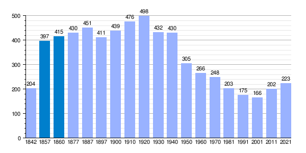 | Gráfica de evolución demográfica de Peraltilla entre 1842 y 2021 |