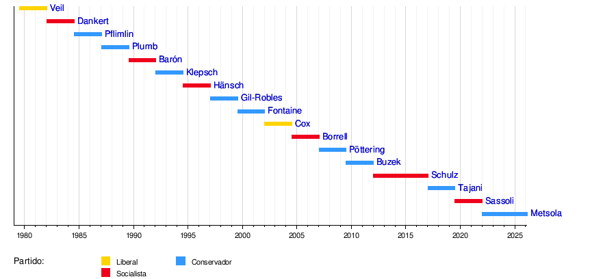 | 2022-2024 | Roberta Metsola | Partido Popular Europeo | ||