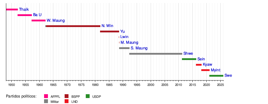 Presidentes de Birmania a lo largo del tiempo