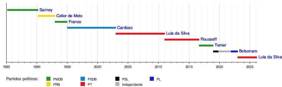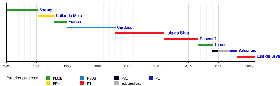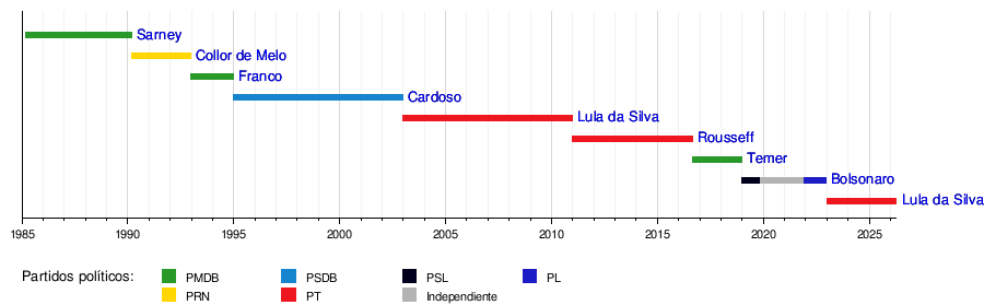 A continuación, se presenta una lista de los presidentes de Brasil desde 1985, cuando comenzó la Sexta República: