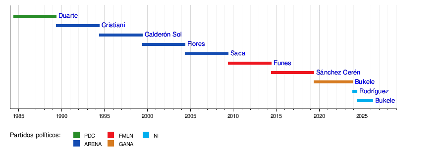 Desde que se creó la Constitución salvadoreña en 1983, ha habido ocho presidentes constitucionales diferentes.