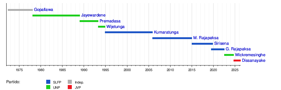 13 de julio de 2022 | 23 de septiembre de 2024 | Partido Nacional Unido | - (Wickremesinghe) |