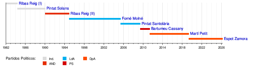 Esta línea de tiempo te muestra de forma gráfica quiénes han sido los Jefes de Gobierno de Andorra y por cuánto tiempo.