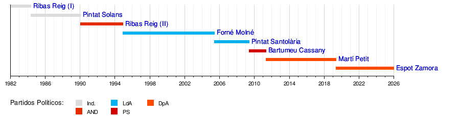 | 1 | Òscar Ribas Reig | 8 de enero de 1982 | 21 de mayo de 1984 | Ind. | |