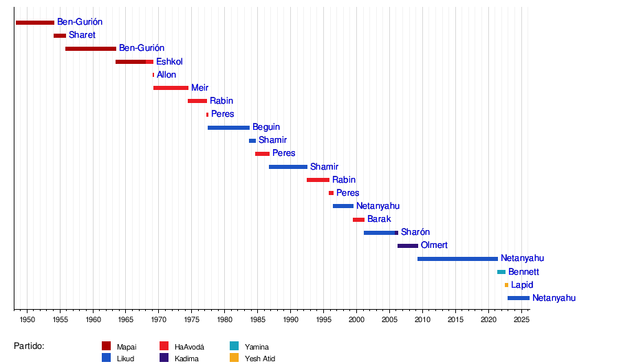 Aquí puedes ver una lista de las personas que han ocupado el cargo de primer ministro de Israel a lo largo de la historia: