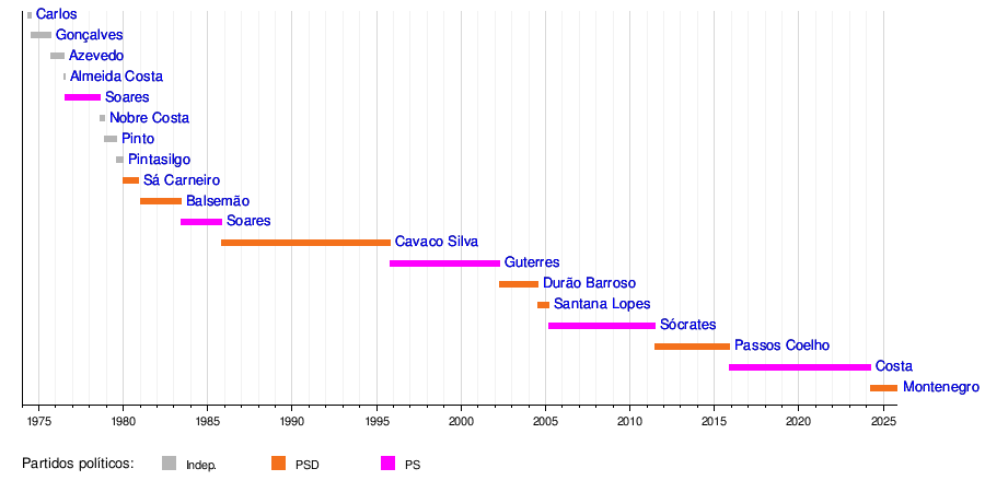 Aquí tienes una lista de las personas que han ocupado el cargo de primer ministro en Portugal desde la Revolución de los Claveles en 1974: