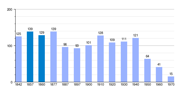 Gráfica de evolución demográfica de Santa María en Cameros entre 1842 y 1970 |