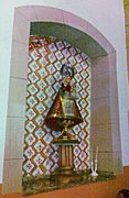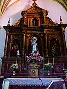 El santuario tenía cinco retablos (estructuras decoradas detrás del altar) de madera de nogal, pero se quemaron en 1936. Solo se salvó la imagen de la Virgen del Remedio. Actualmente, hay un solo retablo mayor, hecho de madera de castaño en 1952.