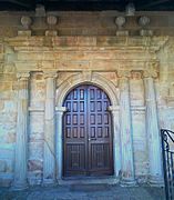 Ambas fachadas, la oeste y la sur, tienen un pórtico (una especie de porche) sostenido por pilares. En la fachada sur hay una imagen de la "Virgen Niña", conocida popularmente como "La Perezosa". En la fachada principal, la sur, hay otra imagen de la Virgen sobre una luna, rodeada por un rosario y con la inscripción "Nuestra Señora de los Remedios".