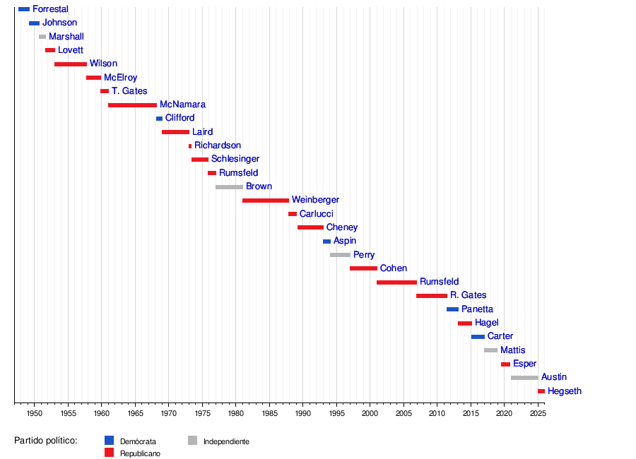 | 21 | Donald Rumsfeld (2.ª vez) | 20 de enero de 2001 - 18 de diciembre de 2006 | George W. Bush | |