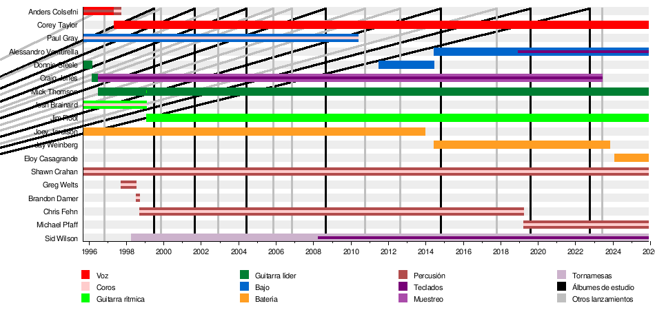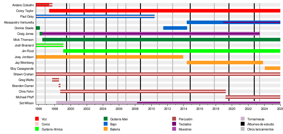 - (#1) Joey Jordison: batería, percusiones (1995-2013, fallecido en 2021)