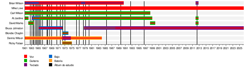 | Carl Wilson (fallecido) Dennis Wilson (fallecido) Ricky Fataar Blondie Chaplin |