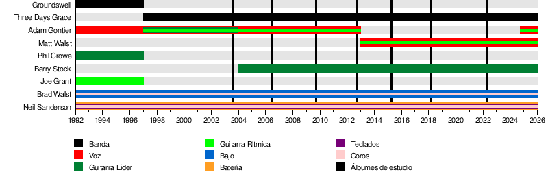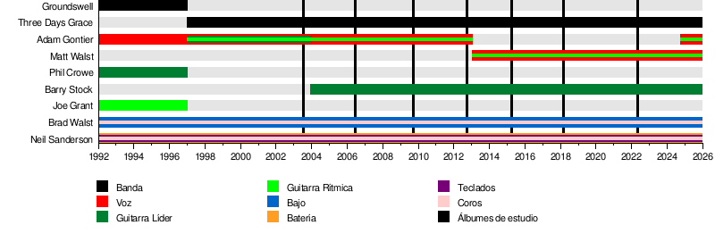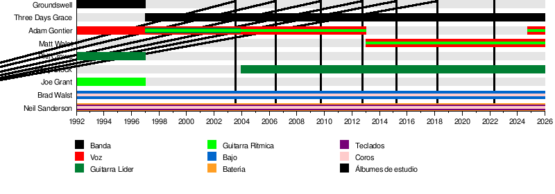 Three Days Grace es una banda de rock que se formó en Ontario, Canadá. La banda comenzó en 1992 con el nombre de Groundswell. Sus miembros fundadores fueron Adam Gontier, Brad Walst y Neil Sanderson. En sus inicios, Groundswell incluía a Gontier (voz), Walst (bajo), Sanderson (batería, teclados y coros), Phil Crowe y Joe Grant (guitarras).