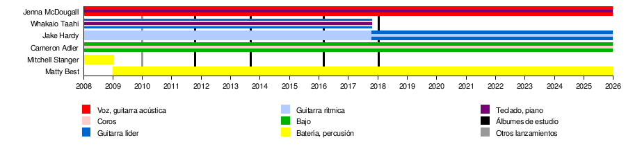 - Jenna McDougall - vocales y guitarra (desde 2009)