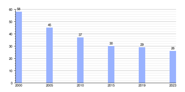| Gráfica de evolución demográfica de Veiga do Pumar entre 2000 y 2023 |